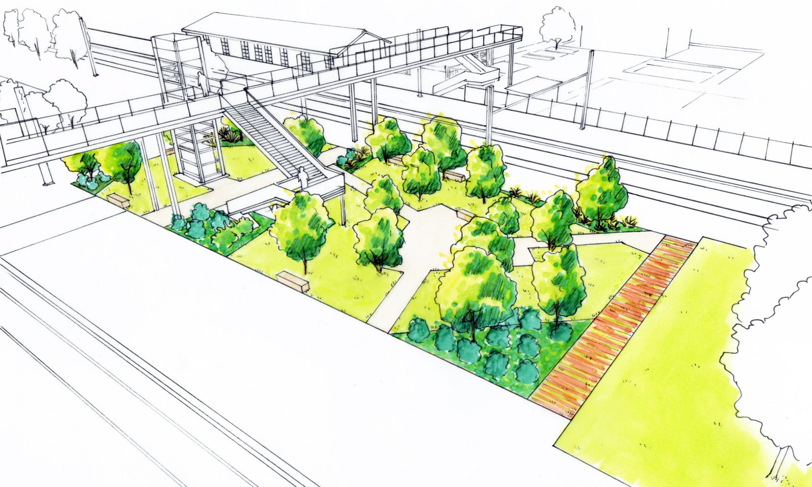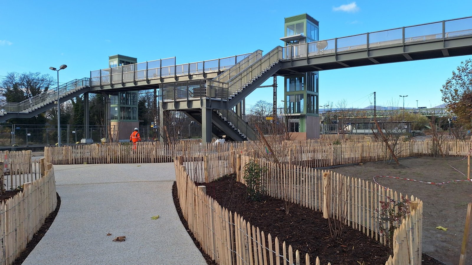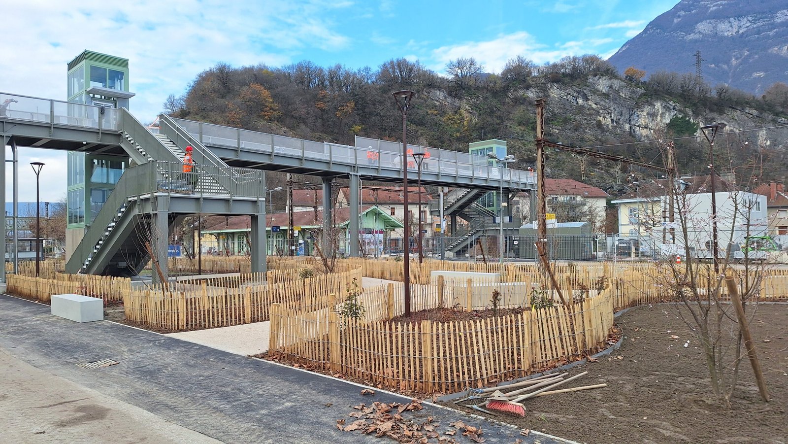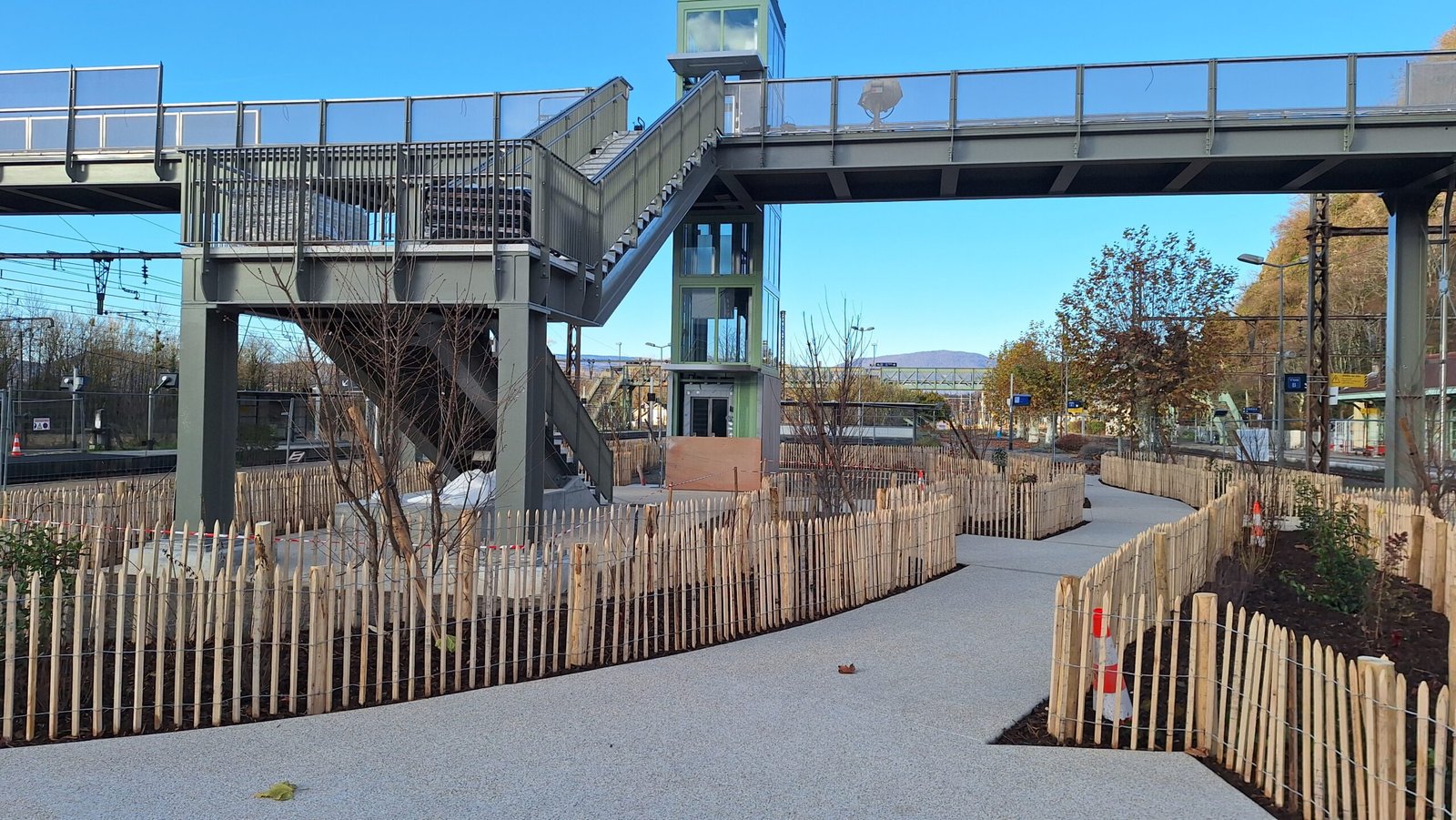 Dans le cadre du projet de construction de la nouvelle passerelle piétonne au sein de la gare de Culoz, le Maître d’Ouvrage (SNCF Gares & Connexions) a souhaité mettre l’accent sur l’intégration paysagère de la nouvelle passerelle. Nous avons ainsi pu concevoir un projet d’aménagement paysager de qualité sur le quai central de la gare afin de permettre aux voyageurs qui attendent leur train de déambuler à proximité des plantations mais également de se reposer sous la fraicheur des arbres.
