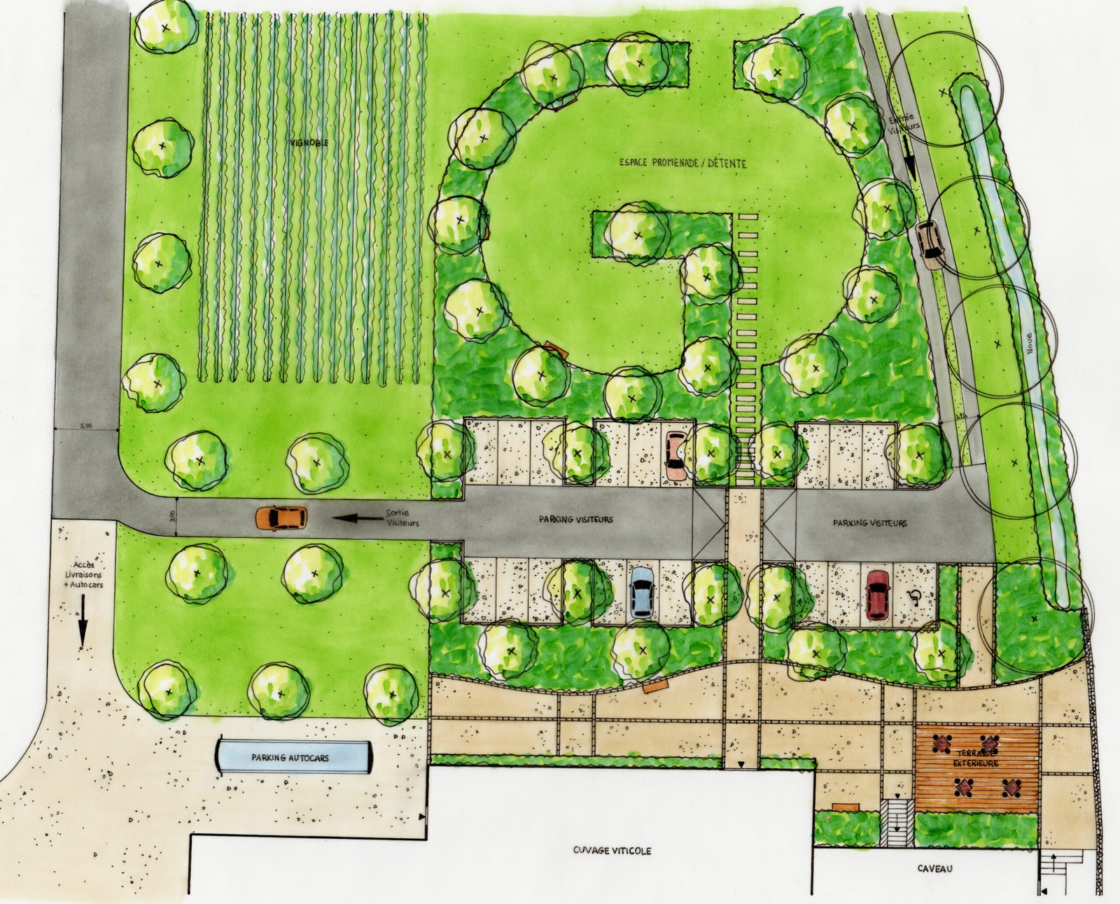 Nos clients ont souhaité faire appel à l’Agence 2B PAYSAGE CONCEPT afin de redéfinir et de recomposer l’espace d’entrée et d’accueil du domaine viticole familiale. Cette réflexion a permis de redéfinir les différent accès (livraisons, cars touristiques, engins agricoles, visiteurs), de créer un parking paysager ombragé dédié à la clientèle, de définir un espace conviviale pour les visiteurs sur la devanture du caveau permettant de faire découvrir les vins du domaine lors des soirées festives tout en pouvant accueillir des mariages, séminaires ou tout autre évènement du domaine, de travailler la nouvelle signalétique visuelle d’entrée du domaine, de paysager avec goût son entrée. Le projet ainsi défini a permis de retrouver une atmosphère chaleureuse et conviviale, plus lisible et plus structurée pour la clientèle du domaine.