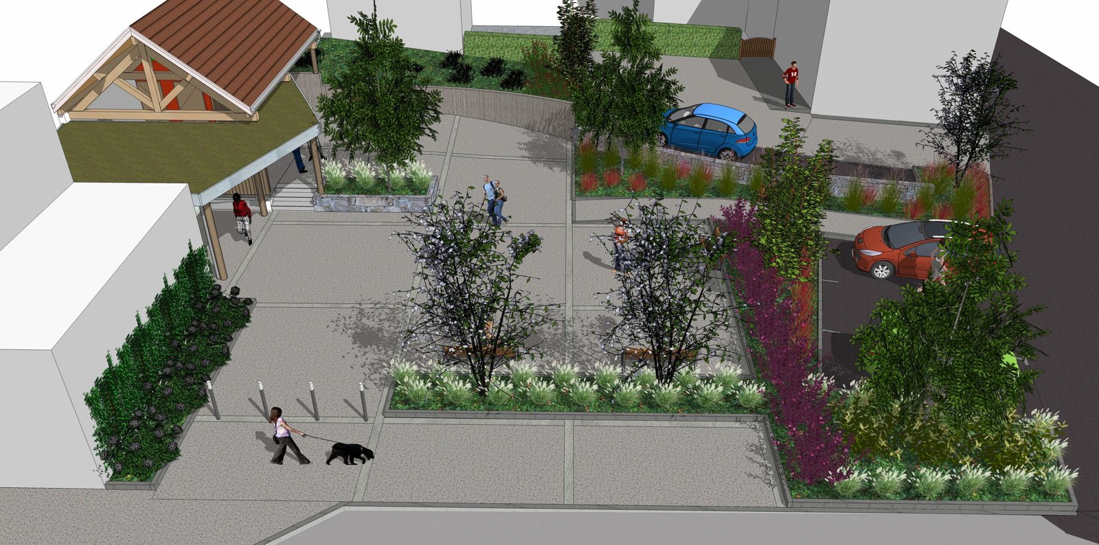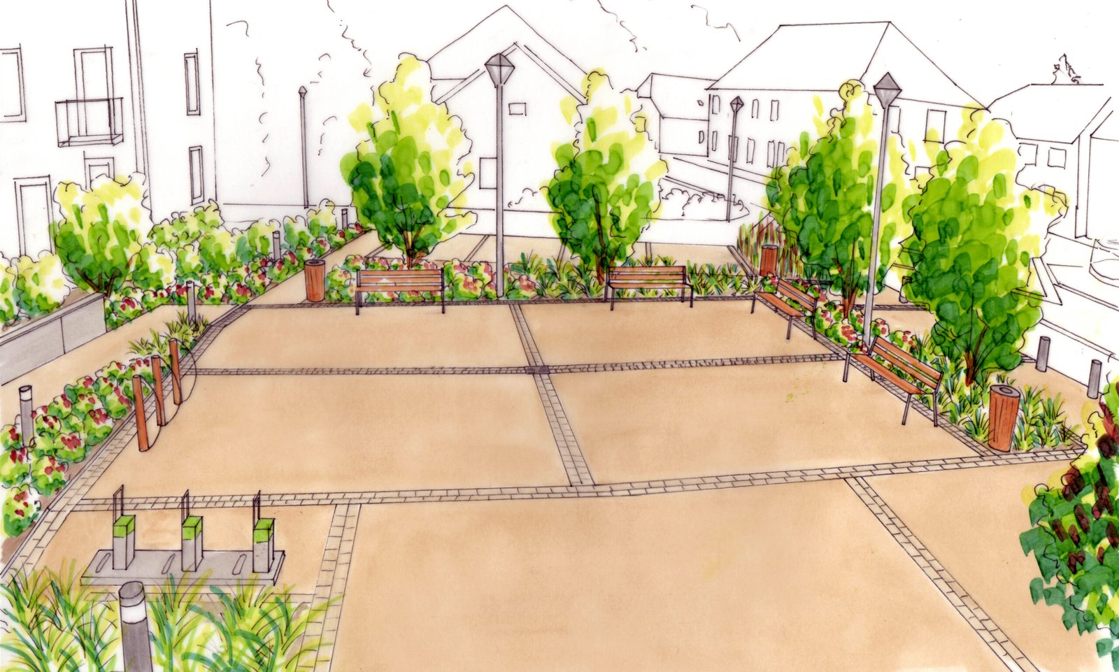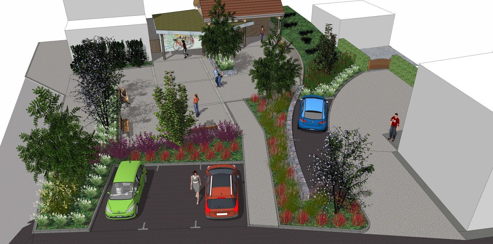 - Végétaliser la placette pour la rendre plus attrayante (massifs de plantations, ilots de fraicheur),