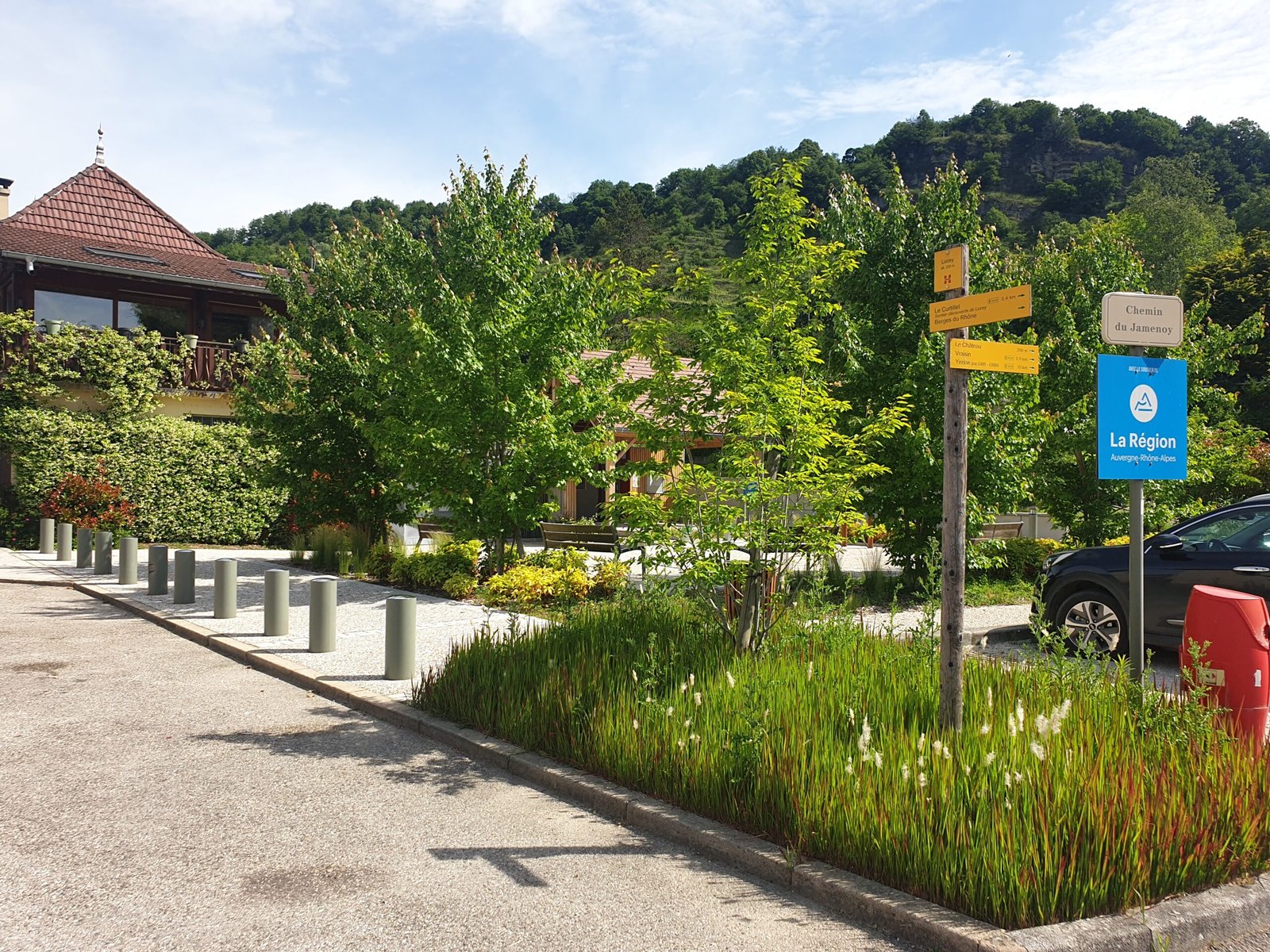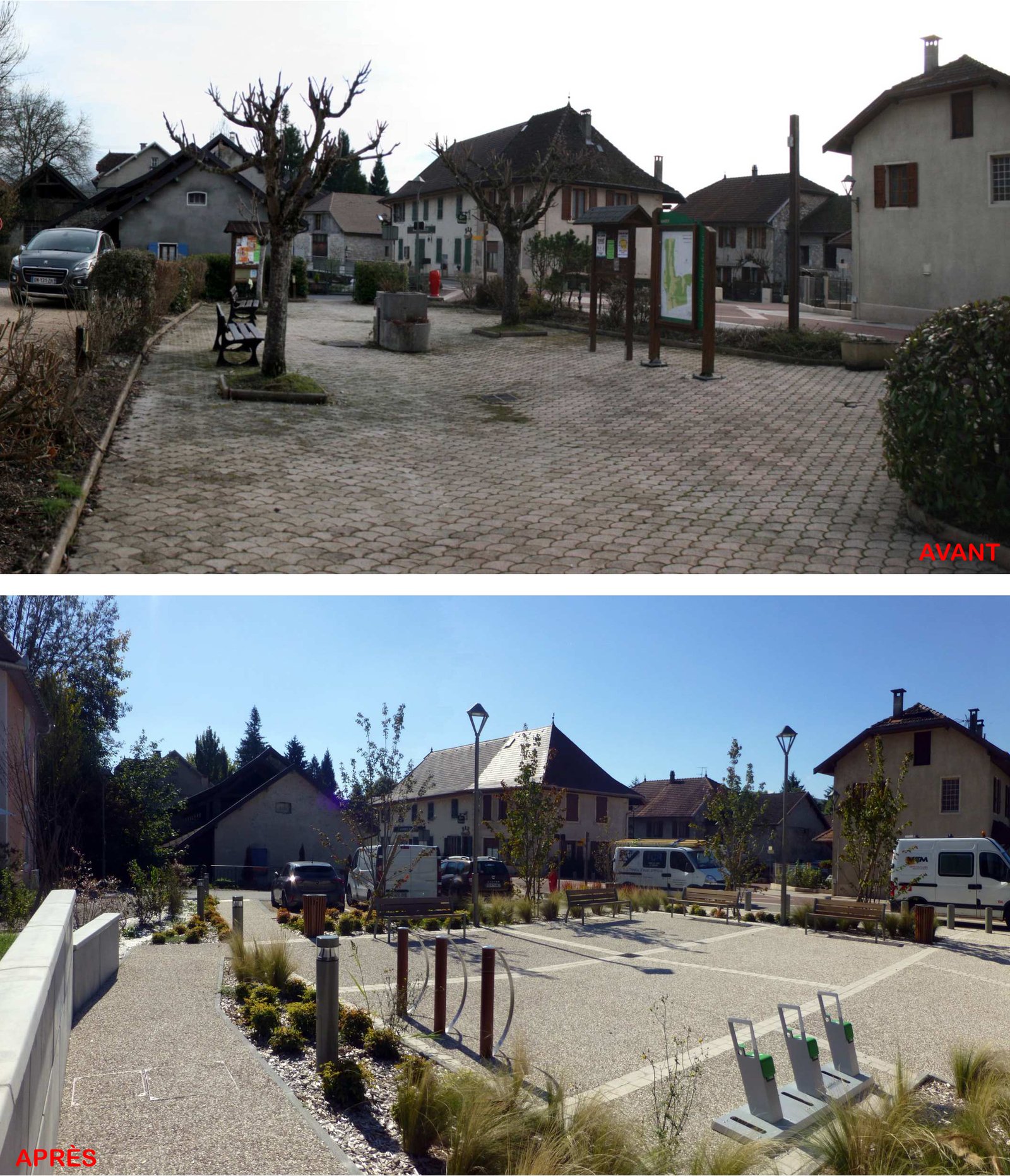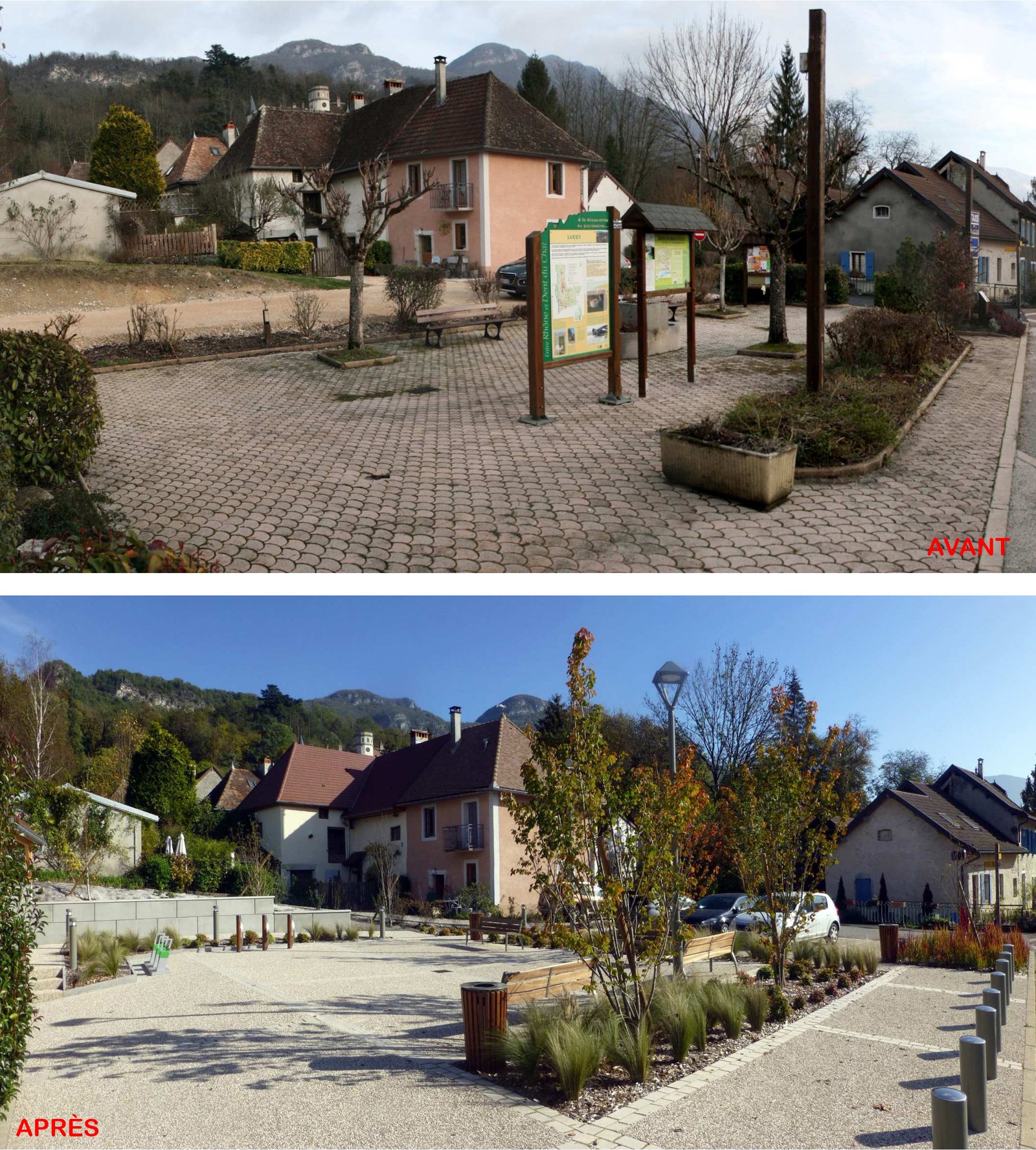 La commune a souhaité réaménager l’ancienne placette du village qui était vieillissante, trop exigüe et plus utilisée par les habitants ni par les touristes de passage sur la commune (marcheurs, randonneurs, cyclistes, via-Rhôna,…).