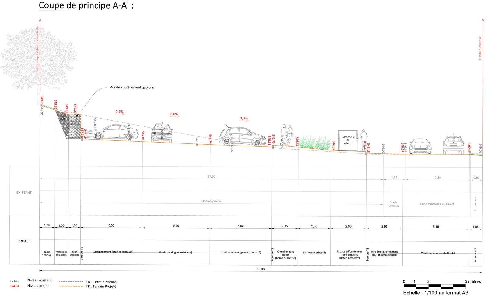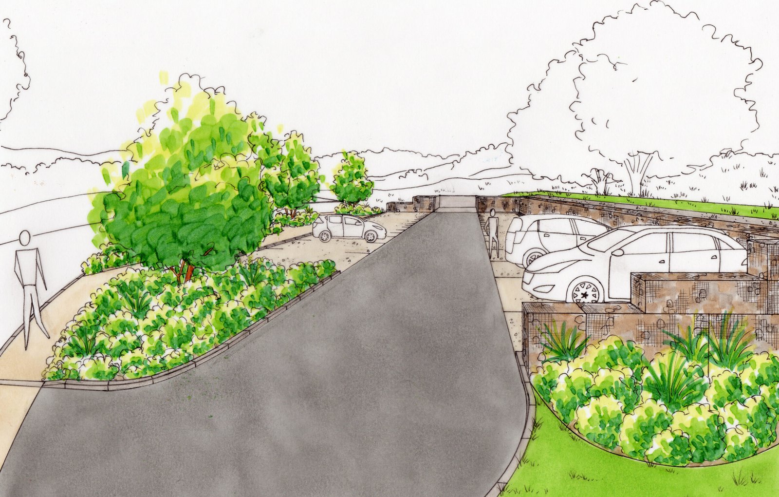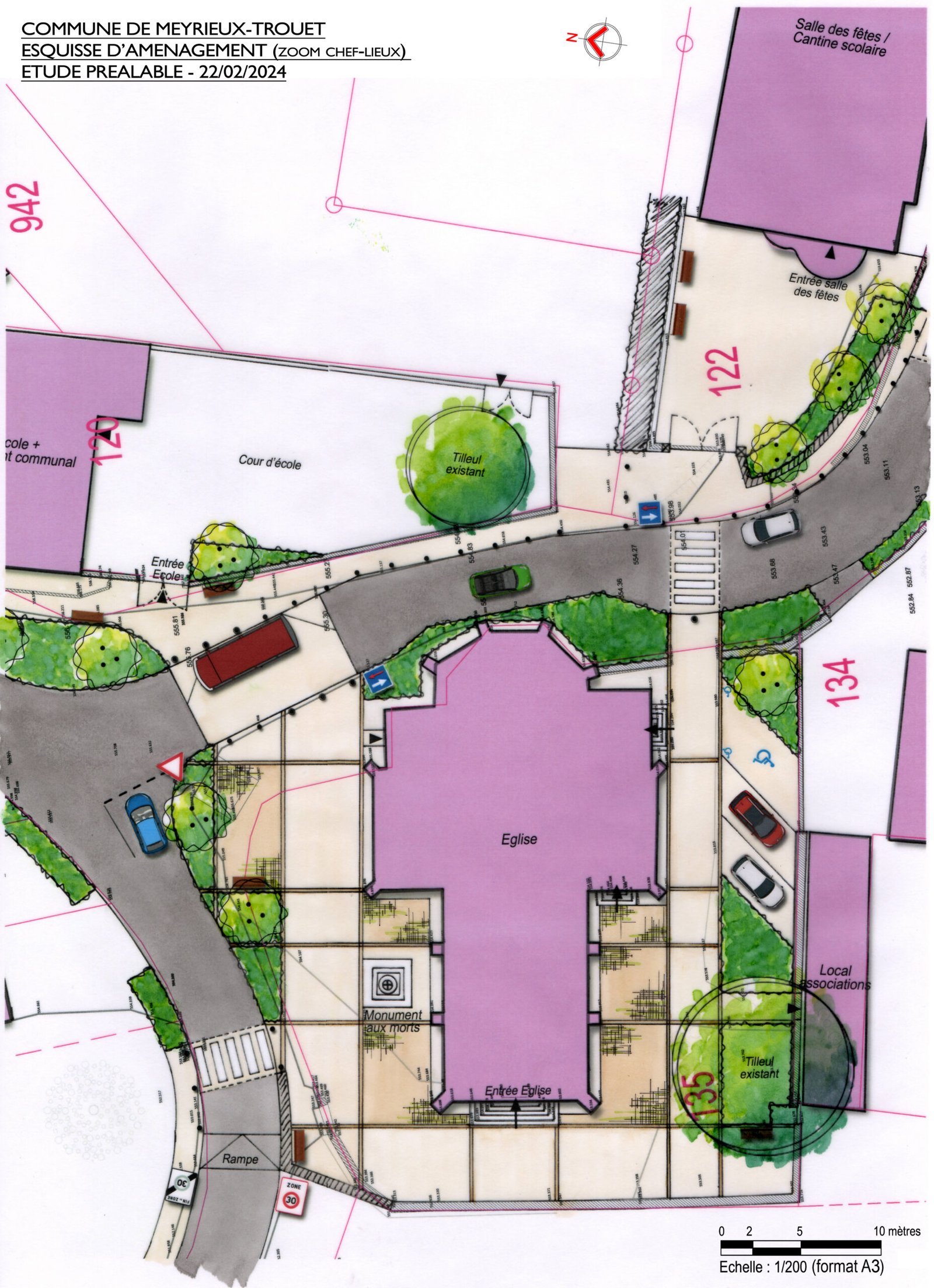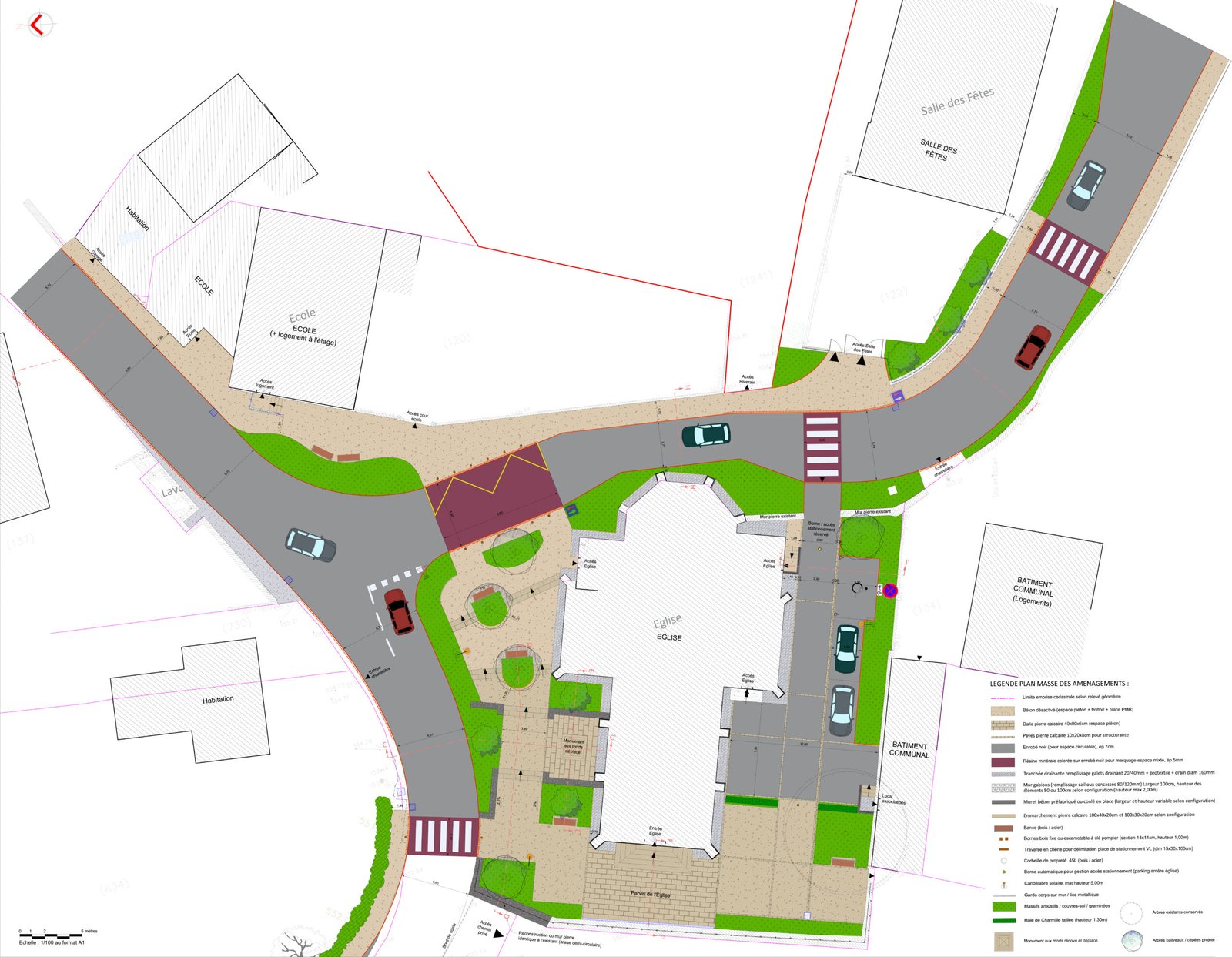 • De réorganiser le stationnement et la circulation des véhicules (ralentissement et rétrécissement de voirie, création d’un parking paysager),
