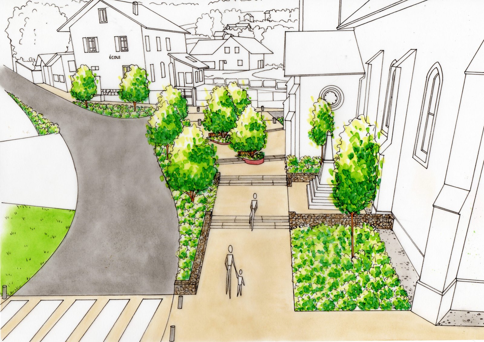 Lucey placette Collectivité - 2B paysage concept - bureau d’étude spécialisé dans le domaine de l’architecture du paysage.